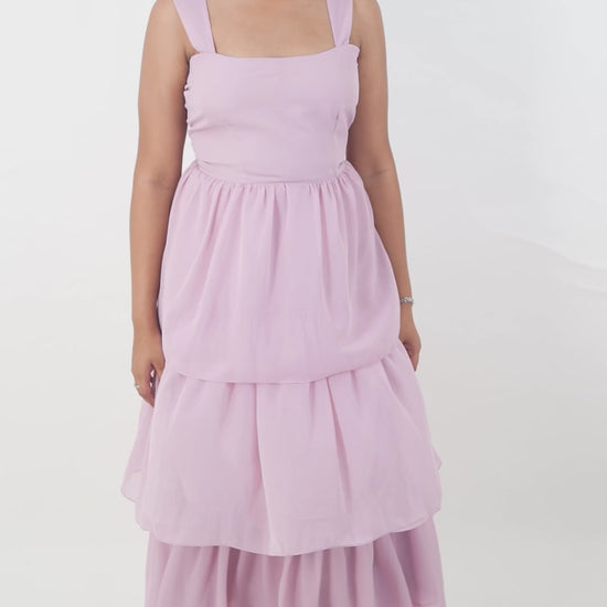 This dreamy mauve layered maxi is all about softness, grace, and that fairy-tale charm! Made of georgette fabric | Available in all sizes and seven colors