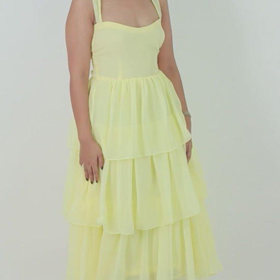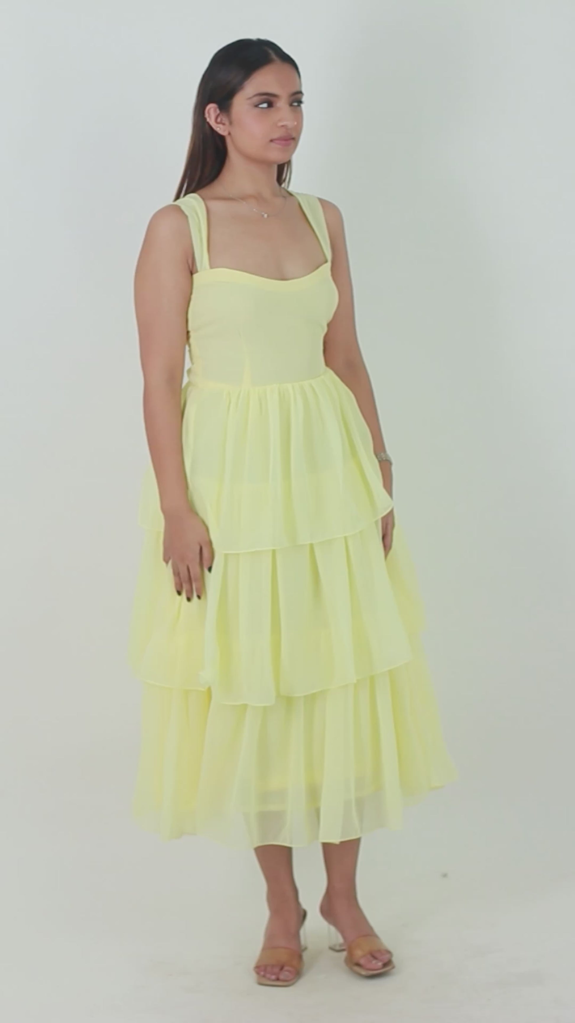 This dreamy yellow layered maxi is all about softness, grace, and that fairy-tale charm! Made of georgette fabric | Available in all sizes and seven colors