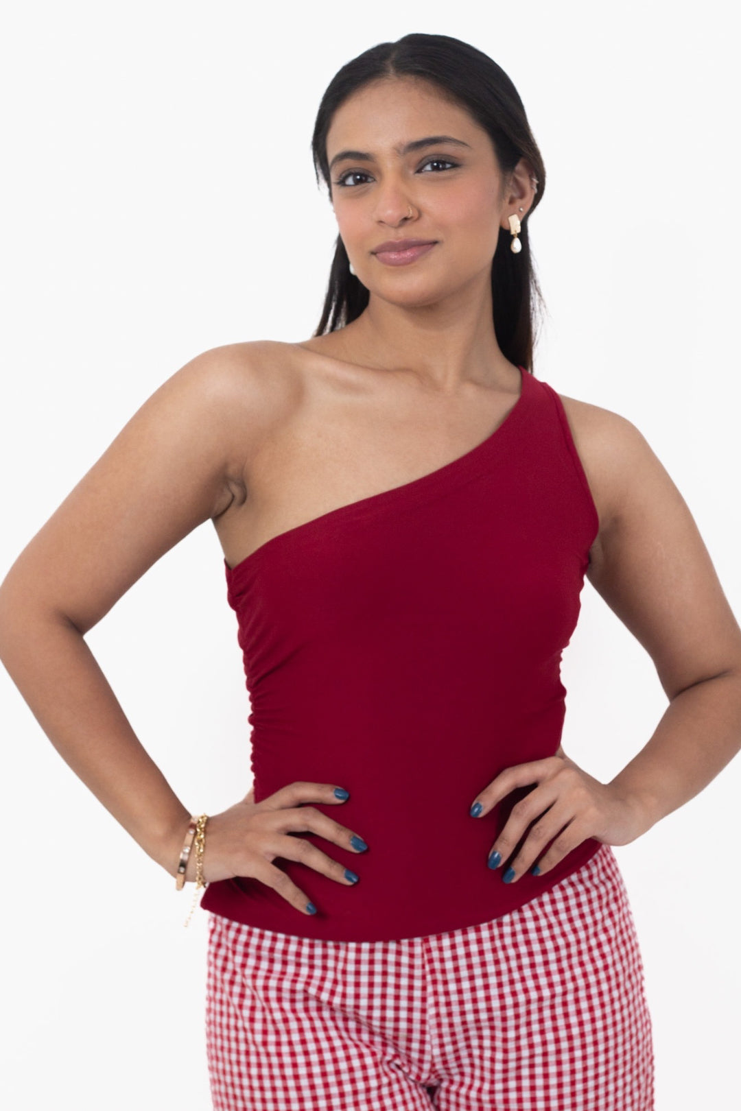 This one-shoulder crop top is here to add that effortless bold vibe to your wardrobe! Made with a soft and stretchy cotton Lycra fabric, it hugs your body just right while keeping you comfy all day.