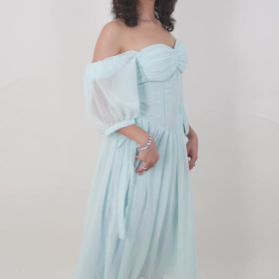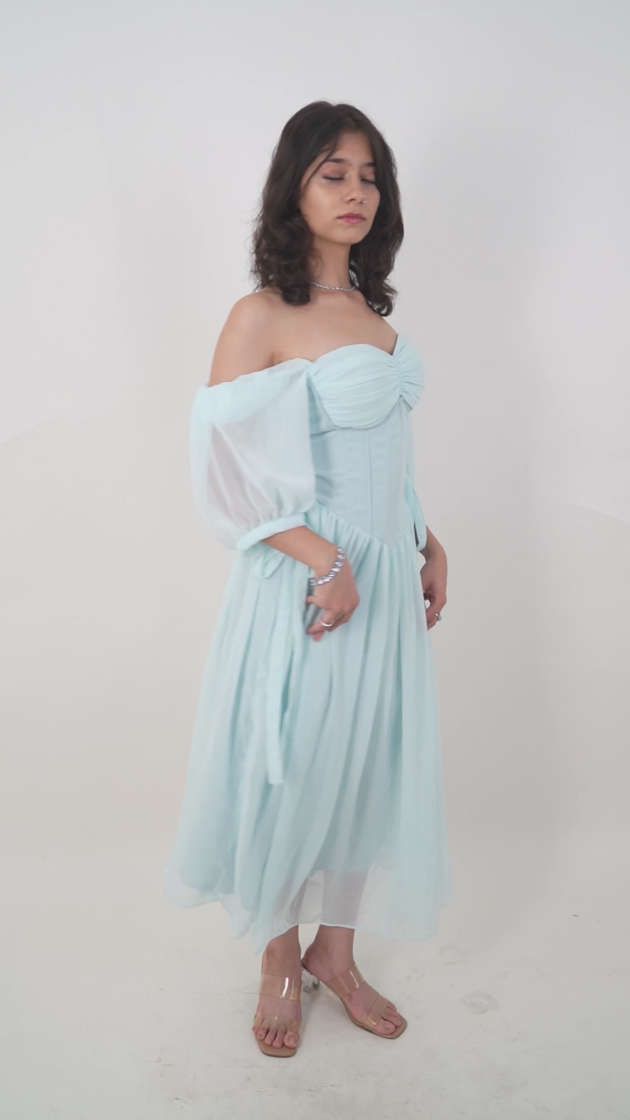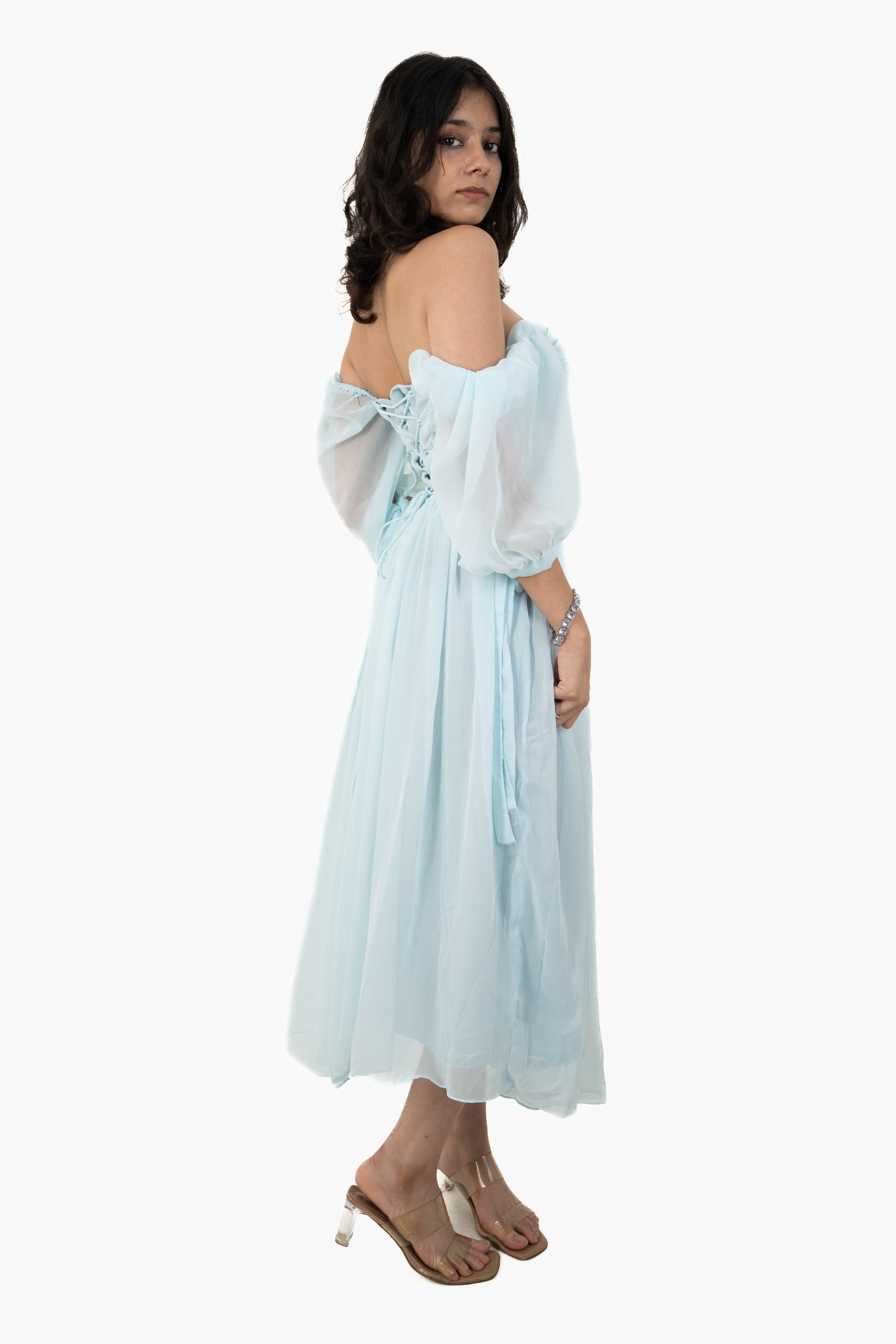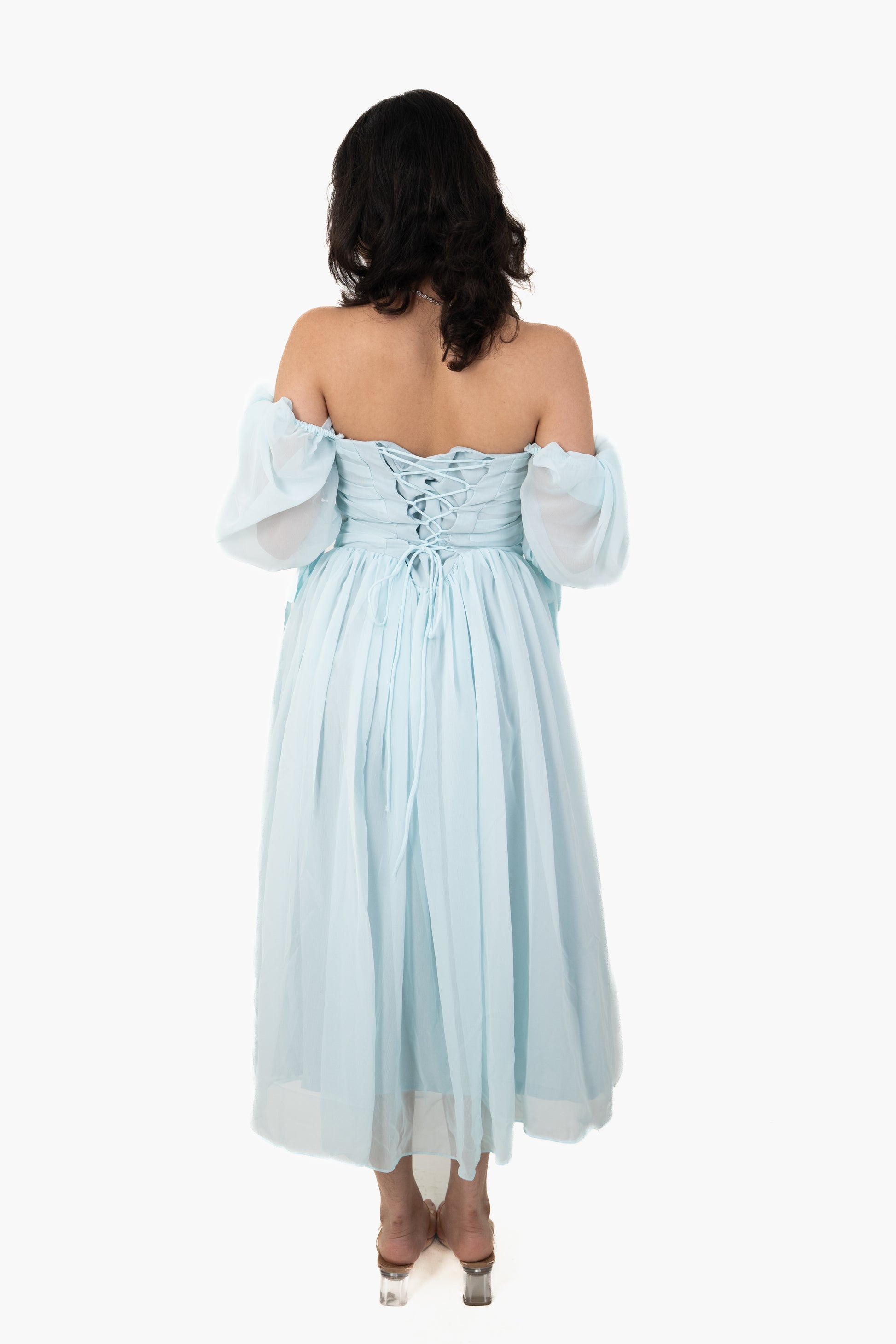 An ice blue maxi straight out of a princess dream – flirty, flowy, and full of sparkle.