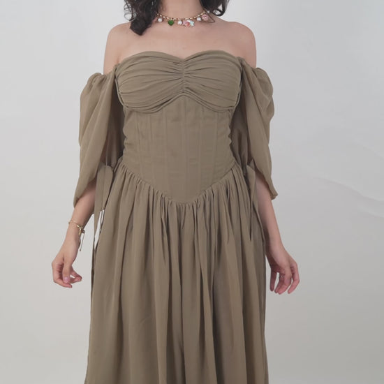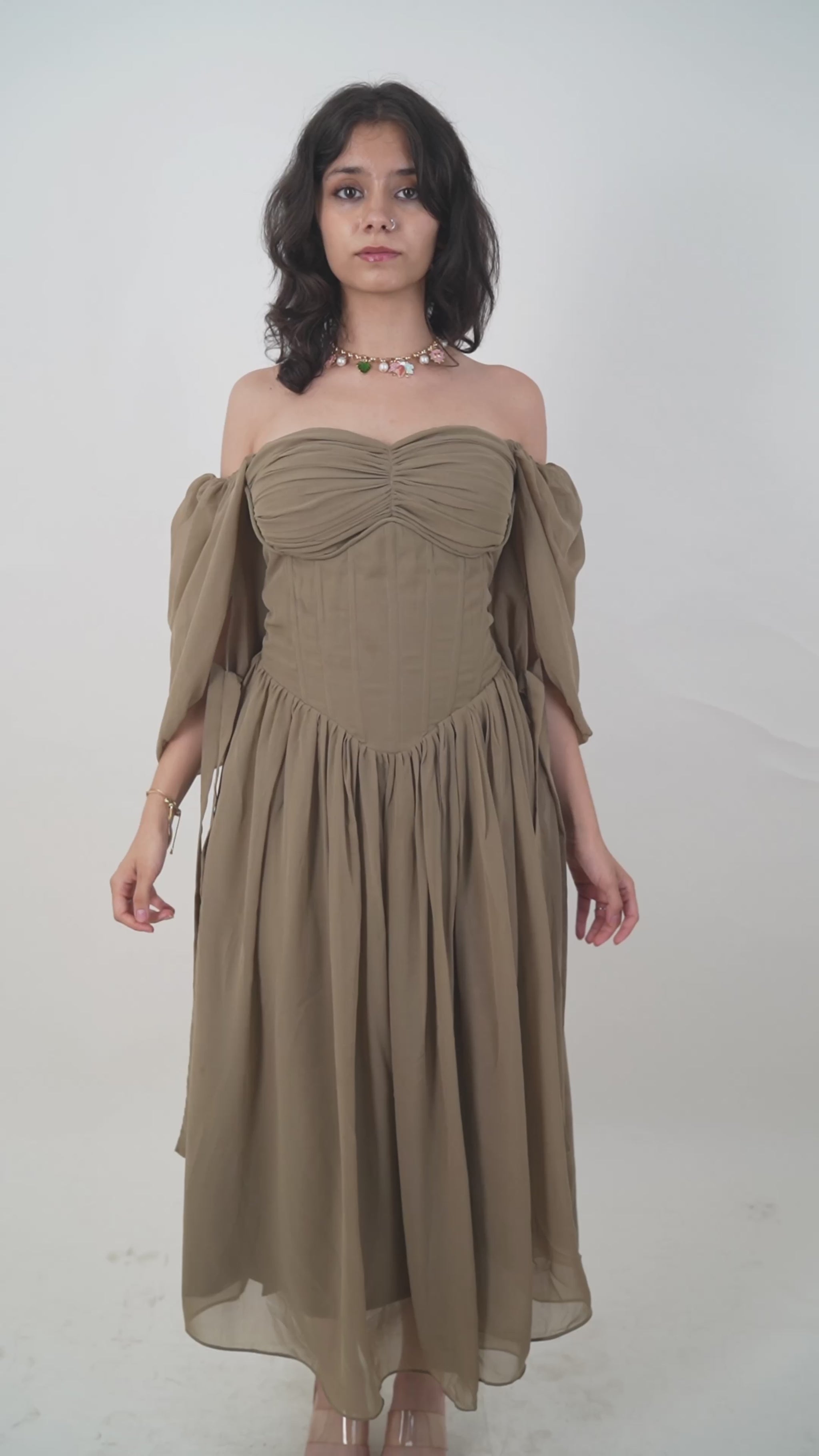 A khaki maxi straight out of a princess dream – flirty, flowy, and full of sparkle.