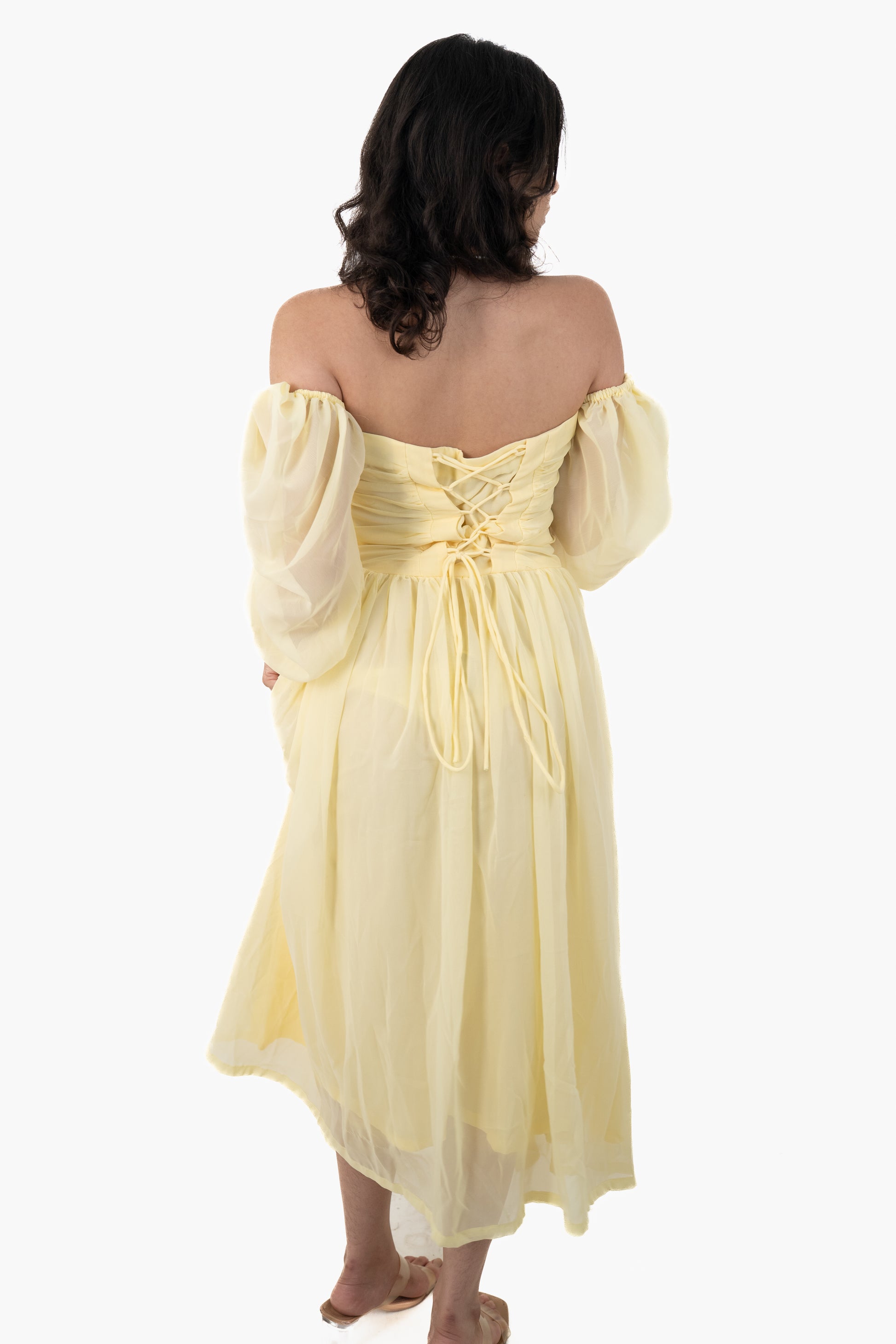 A yellow maxi straight out of a princess dream – flirty, flowy, and full of sparkle.