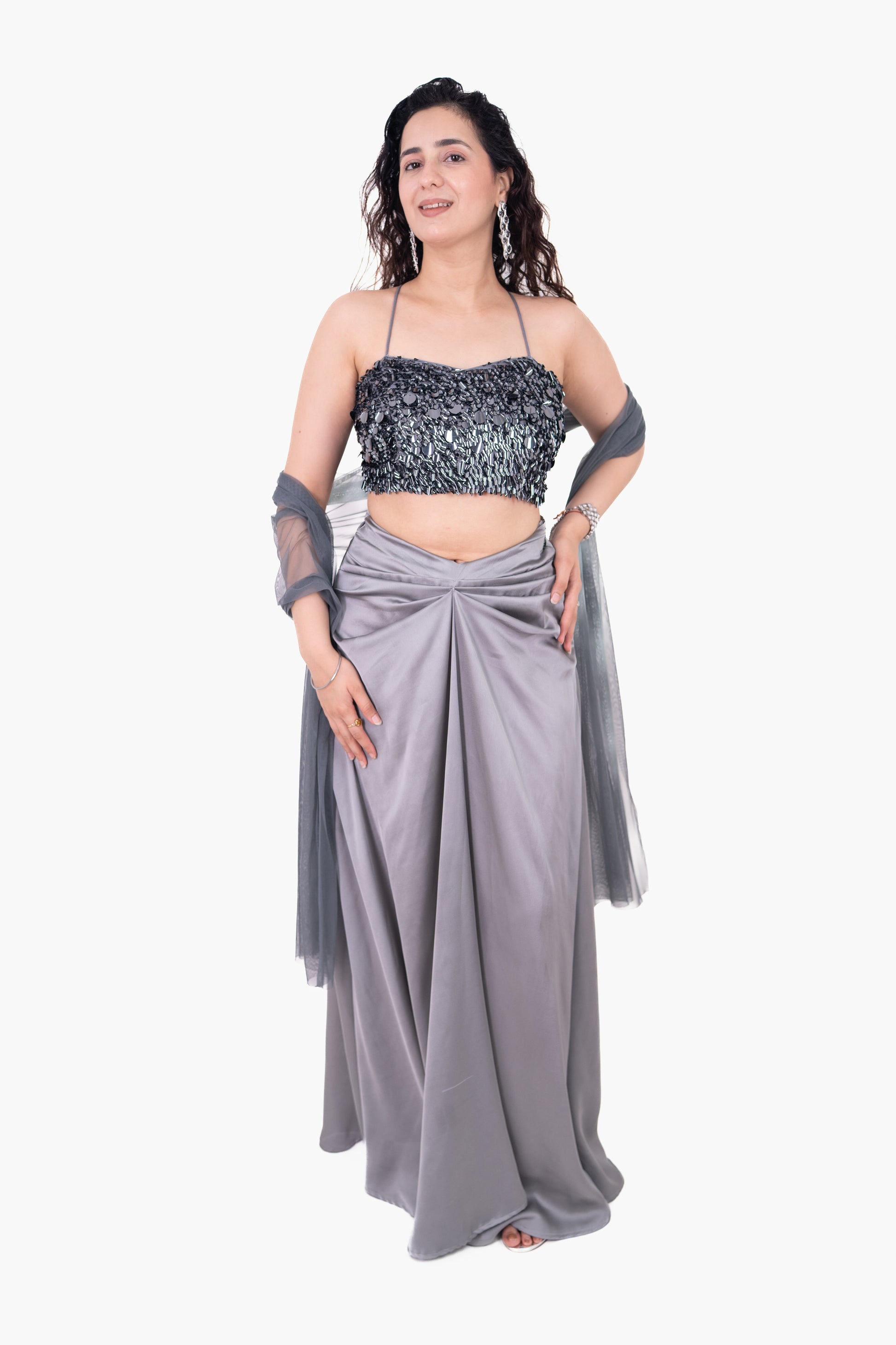 This Gulabi Ada Blouse is all about romance, delicate details, and a touch of glam! Crafted in net fabric with intricate sequin floral work, it’s a dreamy pick for your special occasions.