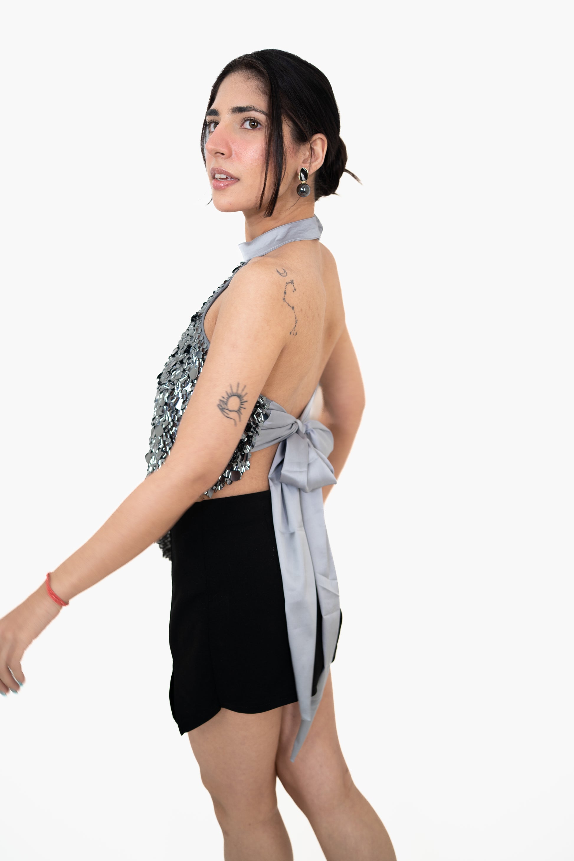 Sunset sparkle, after-hours shine. This is your island-night energy in a gray top.
