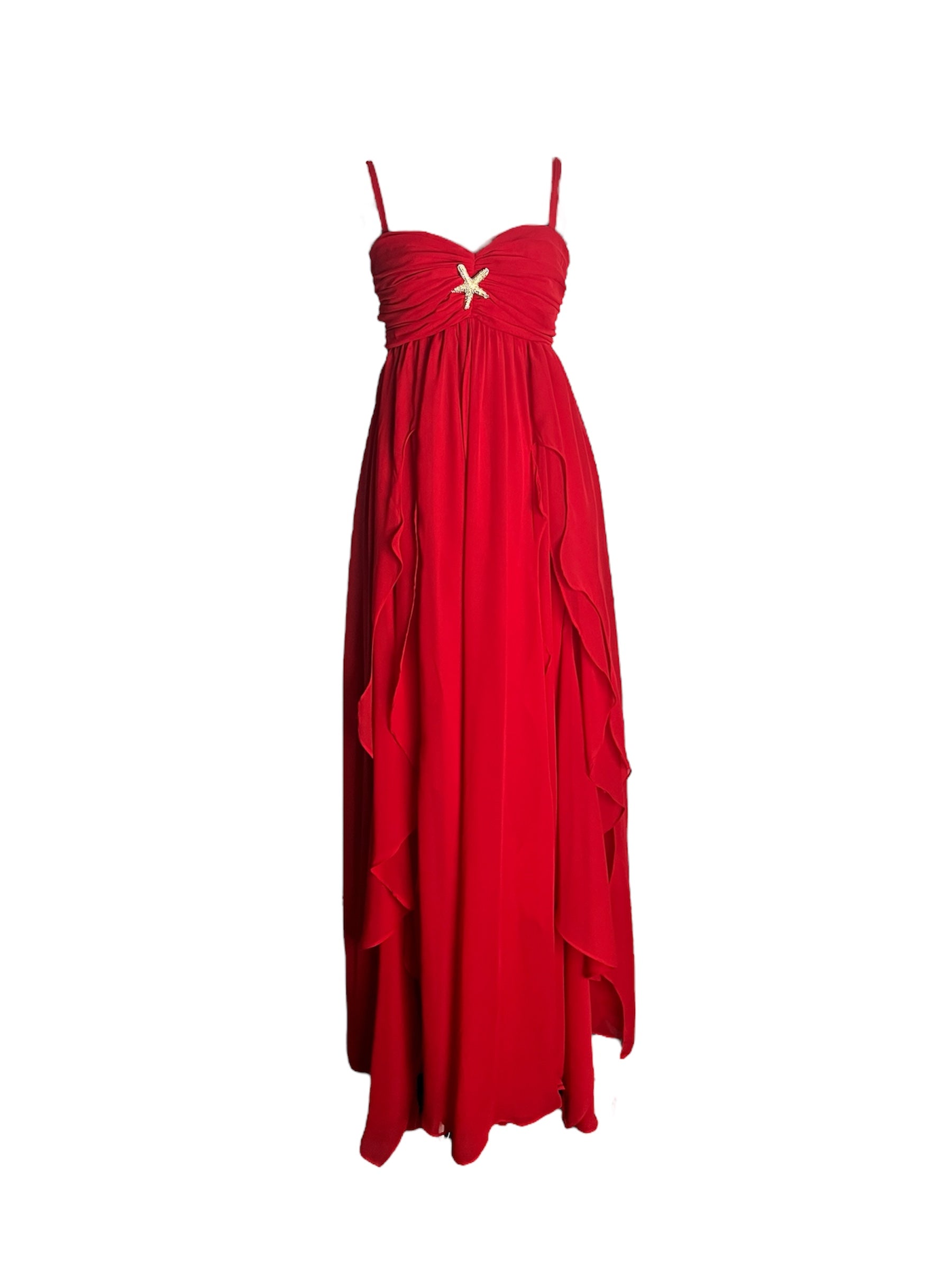 This stunning red georgette maxi is all about flow, elegance, and a touch of drama! Perfect for those who love to make an entrance, this dress is designed to make you feel like a goddess.