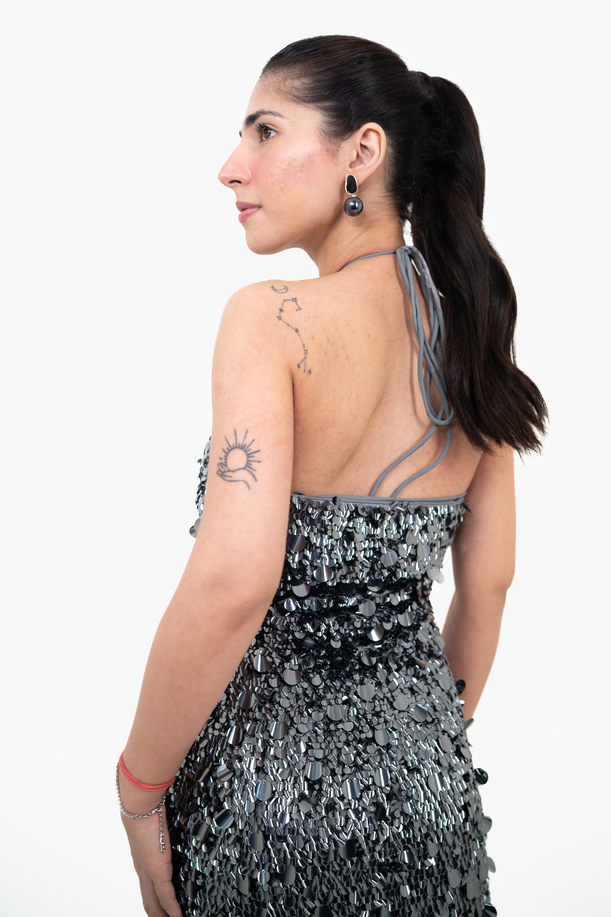 A timeless gray sequin piece that hugs beautifully, sparkles effortlessly, and turns every celebration into your runway moment.